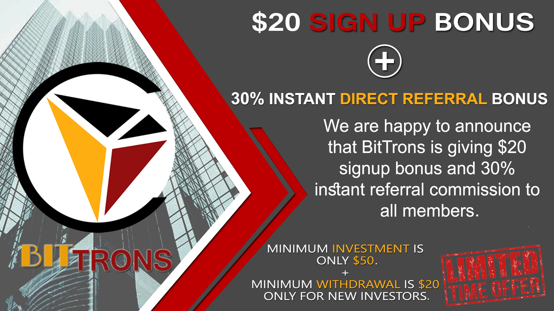 You will earn upto 300% return of your investment. Minimum investment is only $100.